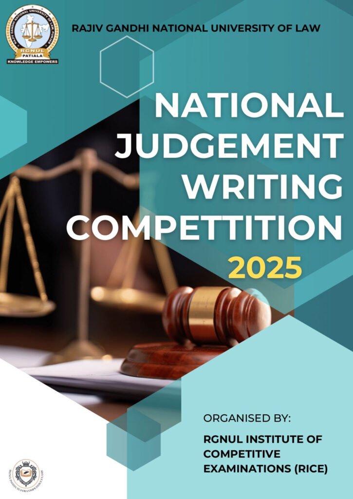 National Judgement Writing Competition 2025 – Apply Now for the November 2025 Opportunity organized by the RGNUL Institute of Competitive Examinations (RICE), Rajiv Gandhi National University of Law, Punjab.