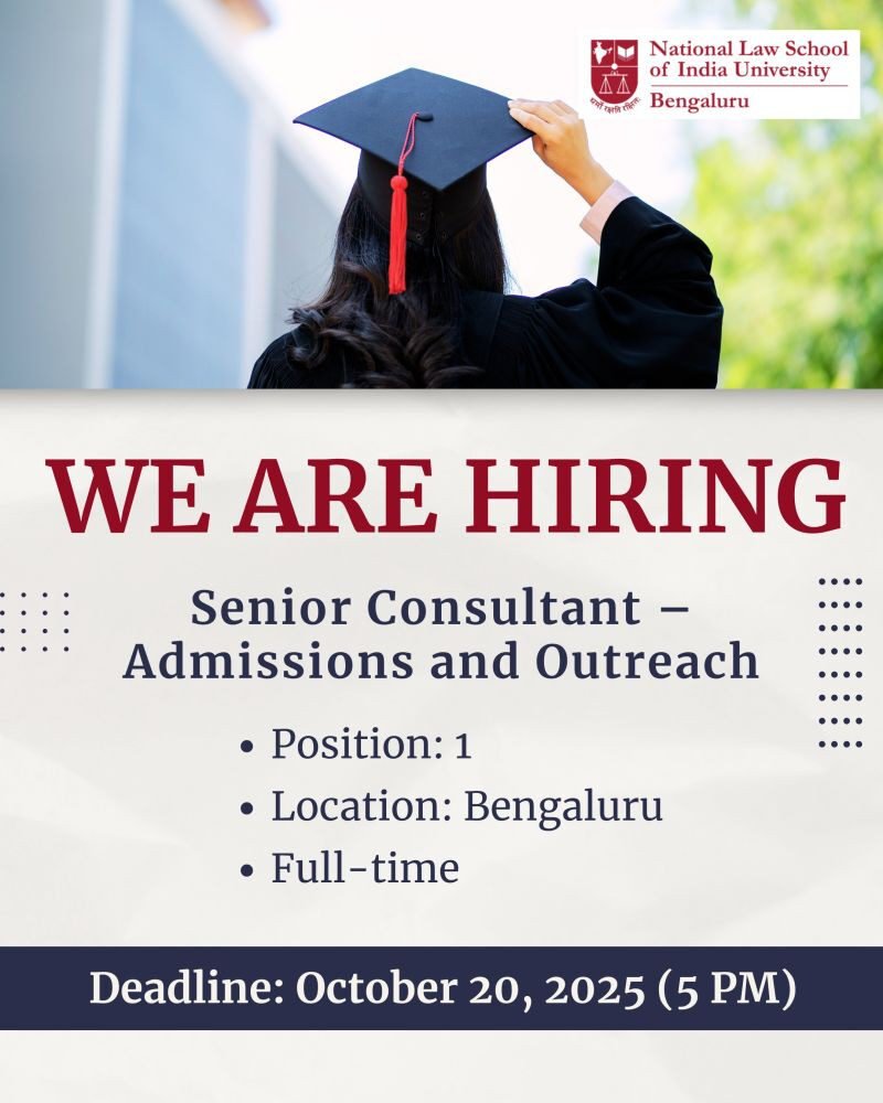 With the launch of this Senior Consultant – Admissions and Outreach position, NLSIU seeks a visionary professional to lead its recruitment and outreach strategies and strengthen the institution’s visibility in India and abroad.